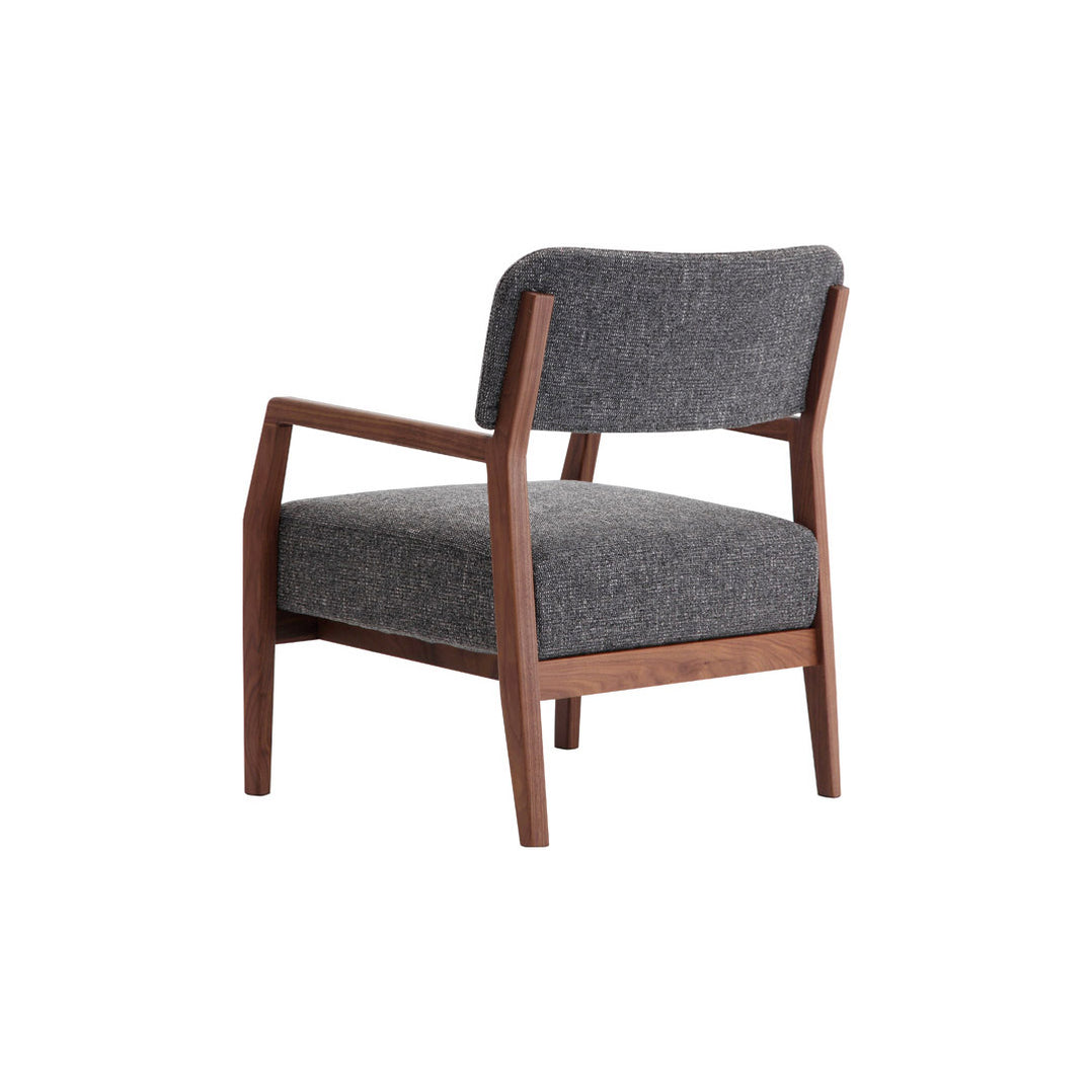 ウォールナットの木部にシックな色合いのファブリックを合わせれば、洗練されたモダンな雰囲気に。