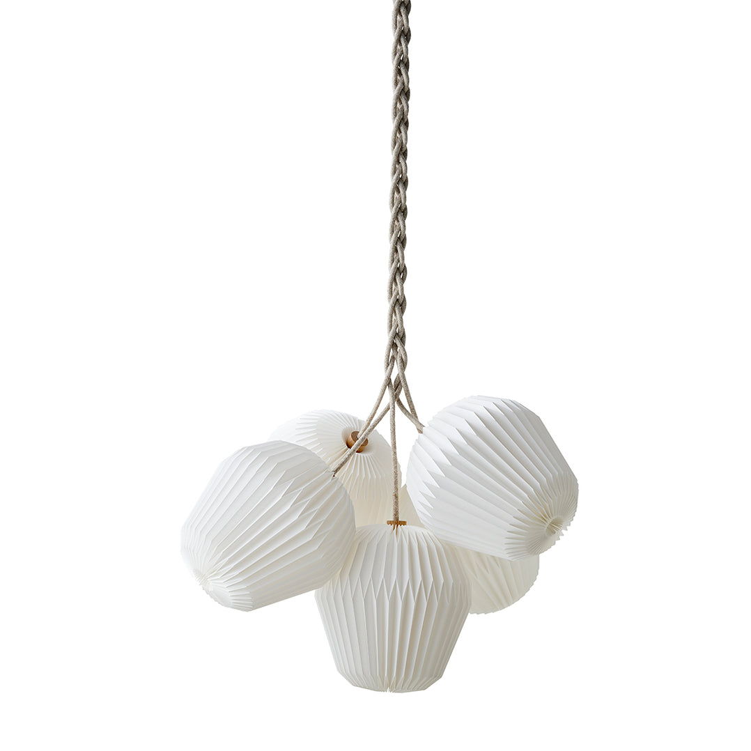 日本の折り紙にも影響を受けた、伝統の直線が美しいシリーズです。規則的に続く折りは美しい陰影を生み出し、レ・クリントの原点となっています。シェードは創業時から変わらず現在もデンマークの工房で熟練した折り職人によってひとつひとつ丁寧につくられています。