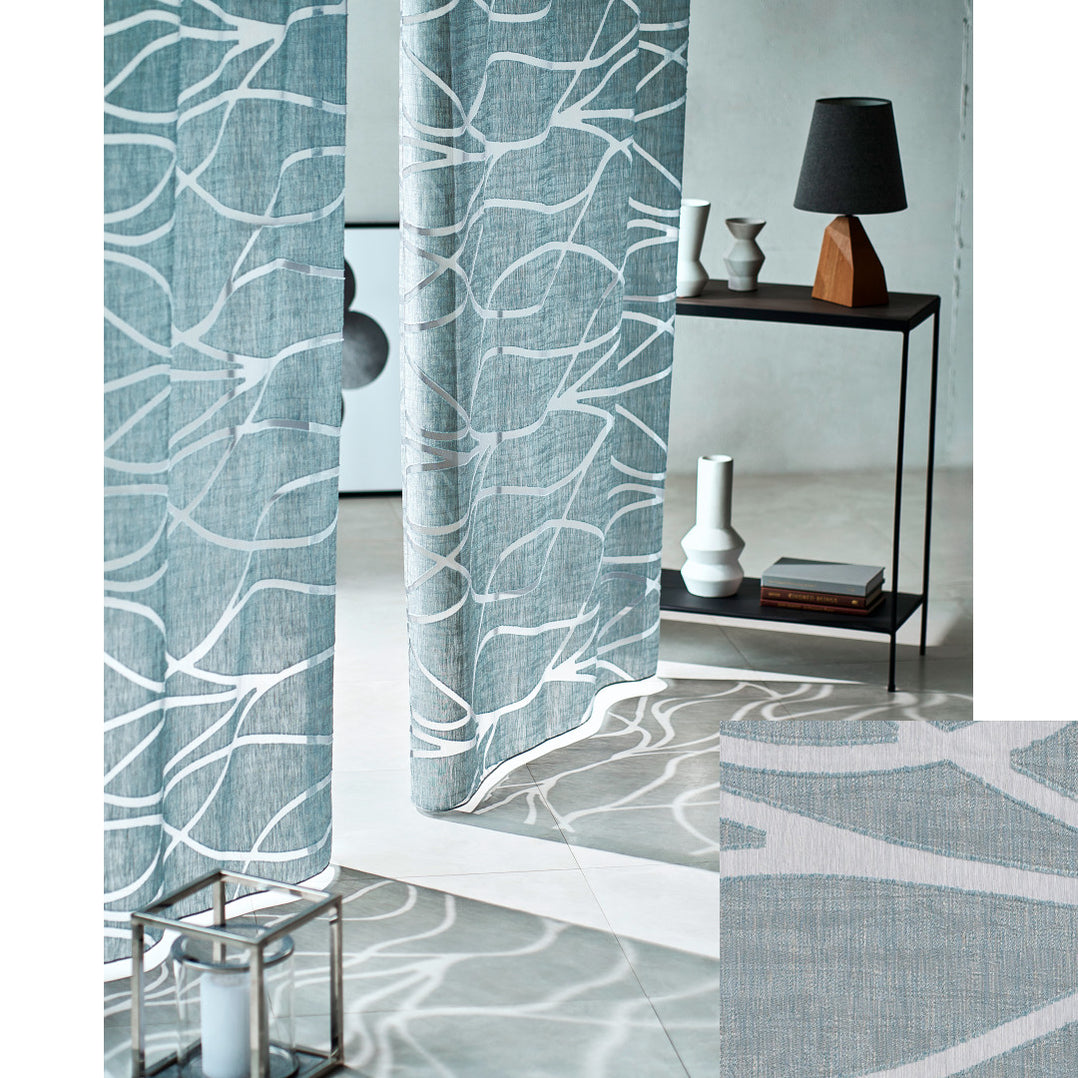 おだやかなウェーブ柄をカット技法で表現したレースカーテン。少し肉厚のベースクロスはカットによって透け感のコントラストを際立たせています。光の差し込みから床に映りこむシルエットが美しく、まるで海の中を漂っているかのよう。そんな幻想的なひとときをお楽しみください。