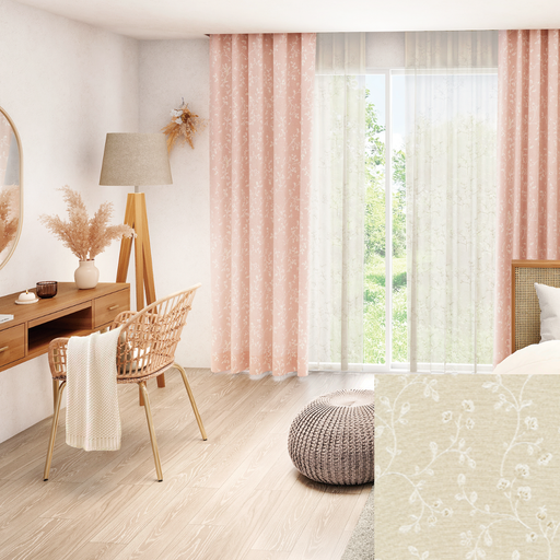 ウォッシャブル エコ 形態安定加工 かわいらしい小ぶりな植物柄のエコドレープ。緻密なジャガード織で細やかなラインを表現し、光沢感の違いによる柄の変化が楽しめる商品。少し丸みを帯びたデザインがやわらかな印象で、ほっと安らぐようなやさしい窓辺を演出します。 コーディネート画像(使用例)|ド...