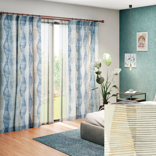 ウォッシャブル エコ 形態安定加工 ヨコ糸にカラー原着糸を織り込み、色合いのアクセントが特徴的なエコドレープ。 二重織ジャガードで表現されたウェーブデザインは、ひとつひとつ織組織に変化をもたせた多彩な表情が魅力的。やわらかなカラーリングでお部屋になじみながら、程よい存在感でナチュラルモ...