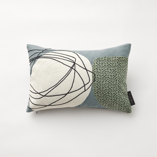 在庫品 通常配送 送料無料 中材別売り 「Doodle(いたずら描き)」のような、自由でのびやかなラインが特徴的なクッション。マーカーで描いたようなプリントと、ラフなフォルムの刺繍が絶妙な抜け感を演出します。リラックス感のあるデザインは、ナチュラル、カジュアルな空間にぴったりです。※こ...