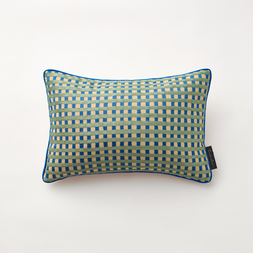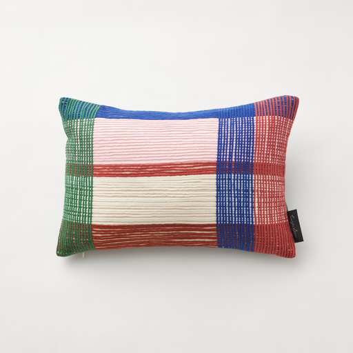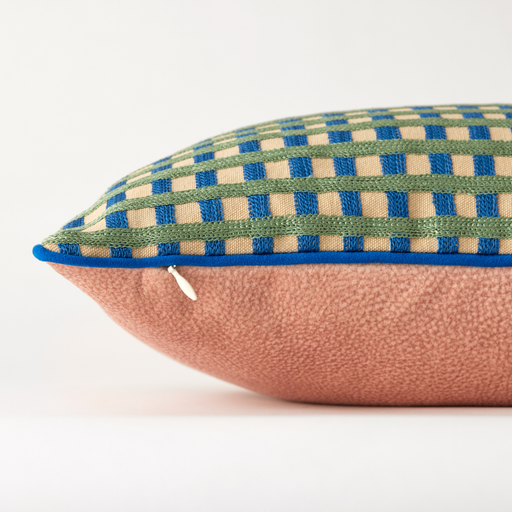 在庫品 通常配送 送料無料 中材別売り キャンディの包み紙のようなキュートさ。ハンドメイドならではのラフなチェック模様に、乙女ゴコロがくすぐられます。パイピングにあしらった鮮やかなブルーと、裏面のペールピンクのカラフルな組み合わせが、ポップモダンな空間にもマッチ。シンプルなデザインなが...