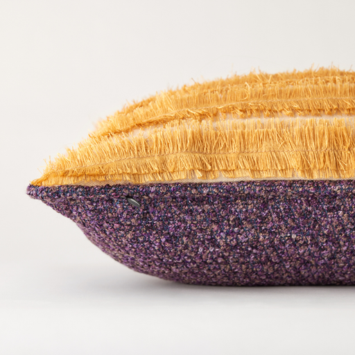 在庫品 通常配送 送料無料 中材別売り クッション全体にあしらわれたフリンジが、どこかココナッツを思わせるデザイン。程よいユニークさを感じる意匠は、ひとつで存在感を放つのはもちろん、ほかのクッションと組み合わせるのもおすすめです。裏面に使用したパープルとのコントラストも魅力的。ひとつ持...