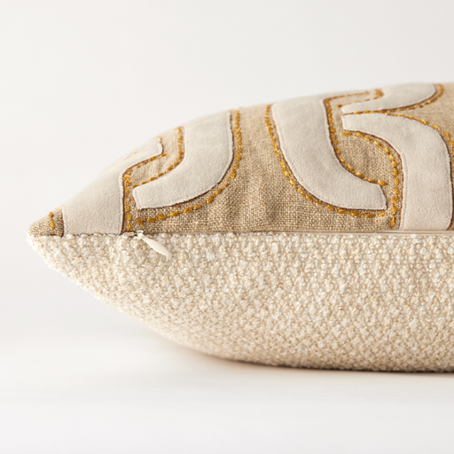 在庫品 通常配送 送料無料 中材別売り ざっくりとしたリネンのベースがナチュラルな雰囲気を演出しつつ、ゴールドのステッチやエレガントなデザインにリゾートの風を感じます。ワントーンながらも異素材のコントラストが生み出す、豊かな表情をお楽しみください。 ※こちらの商品は中材が別売りの商品で...