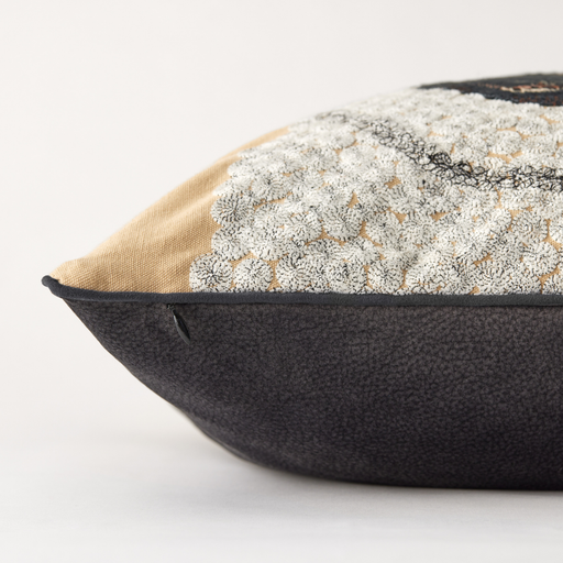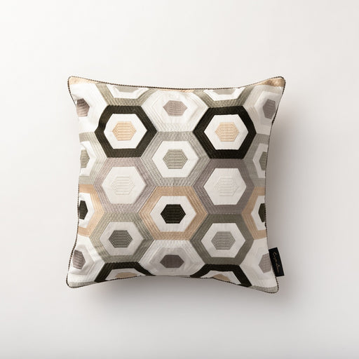 在庫品 通常配送 送料無料 中材別売り レトロでヴィンテージ感のある六角形の幾何学的なデザインが全面にサテン刺繍された生地に、重厚感のあるフルボディの柔らかいシェニール生地を合わせました。モダンでシックなお部屋からナチュラルなお部屋まで、幅広いコーディネートに上質さをプラスしてくれます...