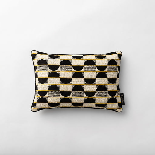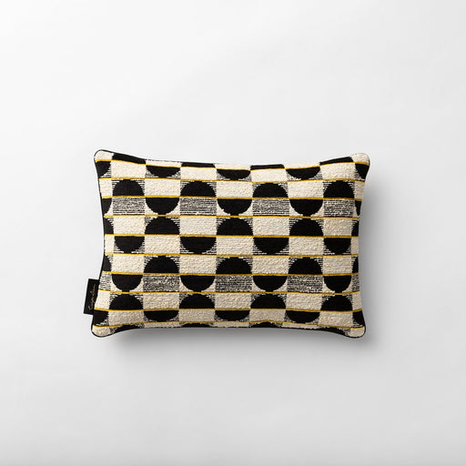 在庫品 通常配送 送料無料 中材別売り ブラックとベージュのジオメトリック柄に、イエローのラインが魅力的なデザイン。素材感を感じるテクスチャ―と、ボリュームたっぷりな質感がしっかりと存在感を感じさせながら、45cm×30cmと小ぶりなので、アクセントとして圧迫感なく使いやすいサイズ感で...