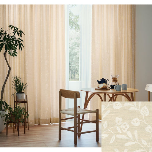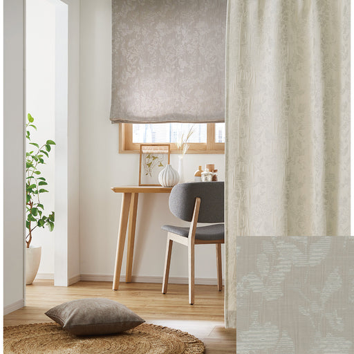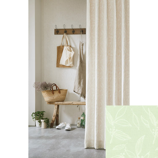 防炎 ウォッシャブル エコ 形態安定加工 フリーハンドで描いたようなリーフ柄のエコドレープは、ジャガード織で表現したもの。やわらかなタッチが女性らしさを感じさせ、心地いいムードを高めてくれます。ライトカラーが軽やかで大人のナチュラル空間を演出します。 コーディネート画像(使用例)|カー...