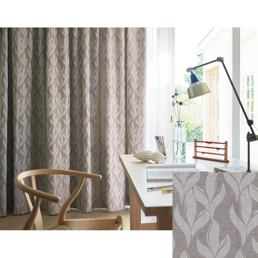 防炎 遮光2級 ウォッシャブル 抗菌・防臭 形態安定加工 パターン化したリーフ柄のジャガード遮光。グランドの糸の揺らぎや、すっきりとしたパターンシルエットが洗練された女性らしさを漂わせます。やわらかなトーンの配色が、あたたかみのある空気感を演出し、ほっと落ち着くひと時をお楽しみください...