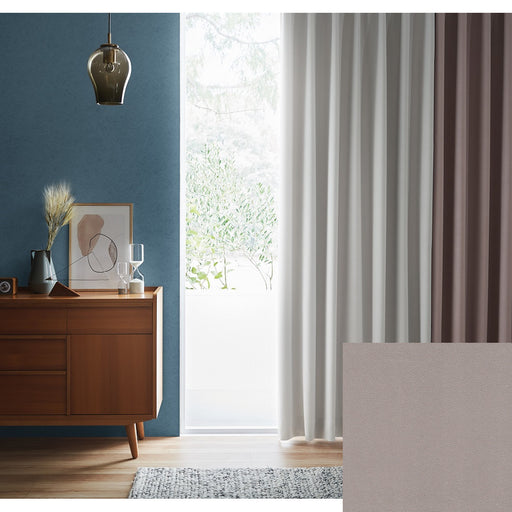 防炎 遮光1級(C) ウォッシャブル テキ温 形態安定加工 一般的な遮光商品に比べ、生地表面に熱がこもりにくく快適なくらしをサポートするテキ温シリーズ。程よい光沢感が美しい無地遮光商品。ざっくり感のある組織が、さり気ない立体感をもたらします。ニュアンスカラーがおしゃれムードを高め、シン...