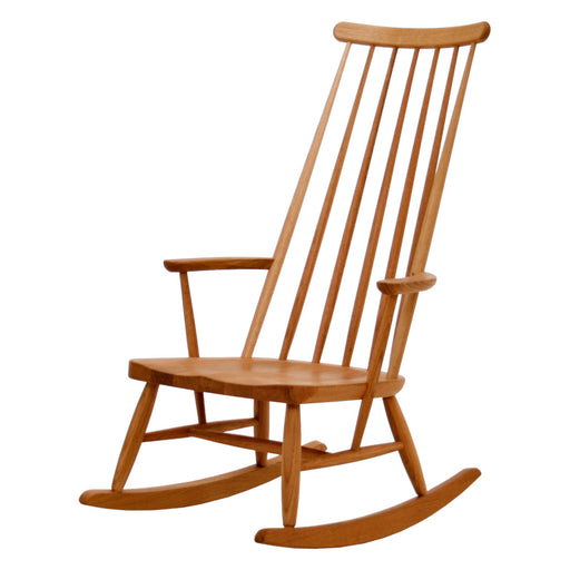 受注生産品 開梱設置配送 完成品 メーカー保証付 「穏やかな空間に」昔ながらのウィンザーチェアのデザインを踏襲したロッキングチェア。レッドオークの優しい木目と、その柔らかな曲線が非常にマッチしています。やさしいデザインは他の調度とも馴染んで穏やかな空間を曝け出します。オプションのクッシ...