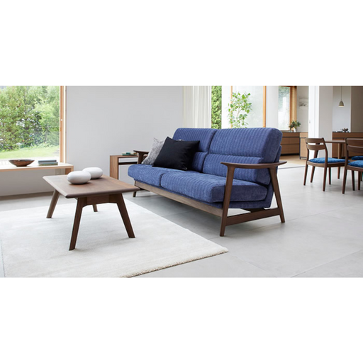 受注生産品 開梱設置配送 完成品 メーカー保証付 画像1枚目:2Pソファ(樹種:ブラックウォールナット TP色、塗装:ウレタン、生地:モナルカ(BL))画像2枚目:2Pソファ(樹種:ブラックウォールナット TP色、塗装:ウレタン、生地:モナルカ(BL))+ リビングテーブル 角(樹種:...