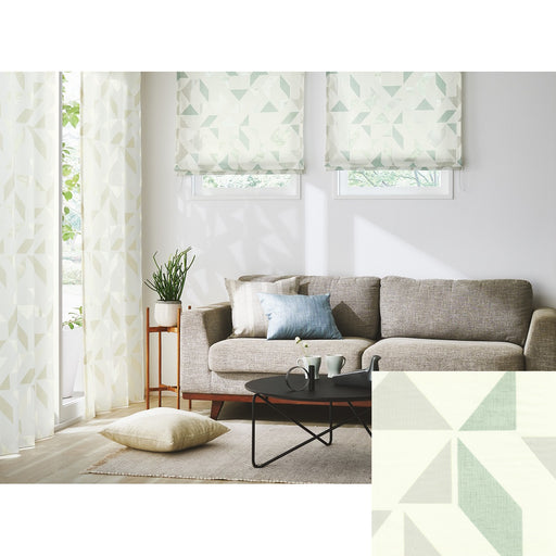 防炎 ウォッシャブル UVカットA 採光 遮熱S 保温 形態安定加工 カジュアルな幾何柄のオパールプリント。光の透過で色合いの変化が楽しめ、室内に映る影もデザインのひとつ。グレイッシュでナチュラルな配色が北欧スタイルにぴったり。軽やかでさわやかに窓辺を飾ります。 コーディネート画像(使...