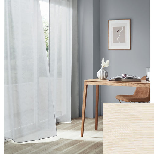 防炎 ウォッシャブル UVカットA 遮像CLASS4 採光 遮熱A エコ 形態安定加工 モダンなカラーリングのジャガードレース。糸の凹凸で角度によって見え隠れするデザインがさり気ない存在感を感じさせます。光沢糸のボリューム感が程よい柔らかさで、幾何学模様でありながらも堅すぎない印象をも...