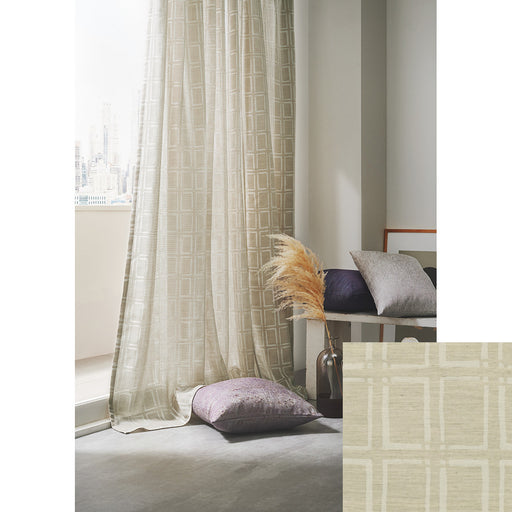 防炎 ウォッシャブル UVカットS 遮像CLASS4 採光 遮熱S 保温 形態安定加工 タイルのようなスクエアパターンの二重織ジャガードレース。手描きの柔らかく不揃いな線の表現がモダンななかにもラフな印象をもたらします。二重織ならではのふっくらとした空気感がどこかあたたかみを感じさせ、...