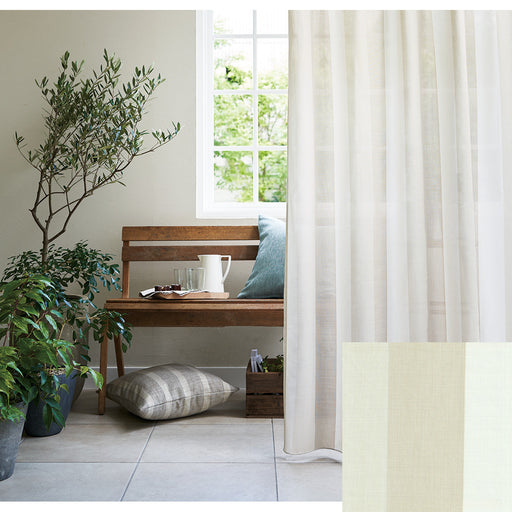 防炎 ウォッシャブル UVカットA 採光 遮熱A 保温 形態安定加工 ヨコ使い やさしいベージュがナチュラルな印象の広幅ストライプレース。織組織と糸配列をアレンジし、透過性や色合いにさり気なく変化をもたせています。シンプルだけど細部にこだわった商品です。 コーディネート画像(使用例)|...