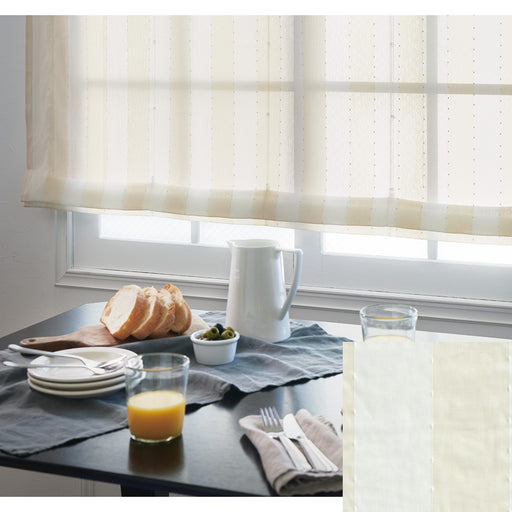 防炎 ウォッシャブル UVカットA 遮像CLASS3 採光 遮熱A 保温 形態安定加工 ヨコ使い 先染めのシンプルな広幅のストライプレース。糸の太細によるムラ感がニュアンスのある表情をもたらします。ぷちぷちした意匠糸がさり気ないアクセントとなり、シンプル&ナチュラルなスタイルぴったりで...