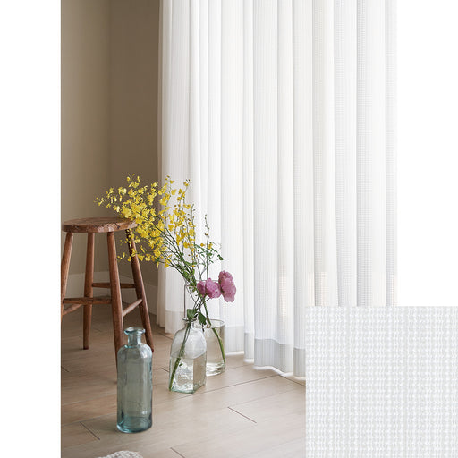 防炎 ウォッシャブル UVカットA 採光 遮熱S 保温 形態安定加工 ヨコ使い 何気ない小柄模様の広幅多機能レース。ほのかな凹凸感が程よい意匠性を感じさせます。ドライな質感とナチュラルな糸の表情が、やさしく穏やかな空気を漂わせ、リラックスムードを高めます。 コーディネート画像(使用例)...