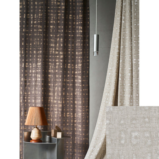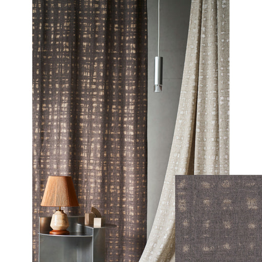 ヨコ使い まるで水墨画のような静のムードを纏うプリントレース。オパール加工を施し、消えてしまいそうなほど淡いグレーのムラプリントの重なりが美しい商品。極薄手のベースクロスと相まって繊細で儚げな印象をもたらします。 コーディネート画像(使用例)|カーテン:JD282 カラーバリ...