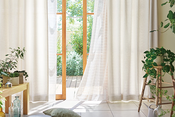 お家で洗濯ができる、天然繊維を使用したカーテンシリーズ。特殊な技術でリネンとポリエステルを複合し、天然繊維特有の収縮を抑えるジアスオリジナルの新素材です。