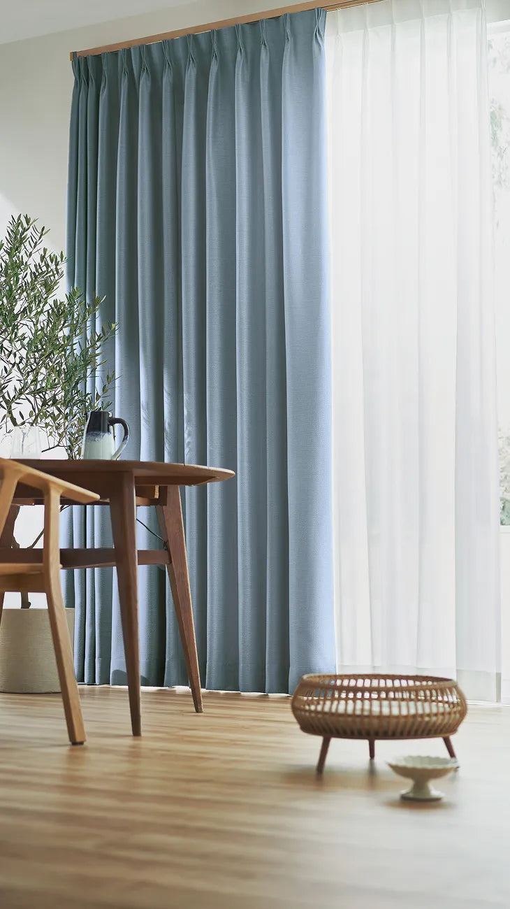 遮光カーテンにありがちな濃色だけでなく、軽やかなトレンドカラーでも「遮光1級A」の高い遮光効果を体感いただけます。