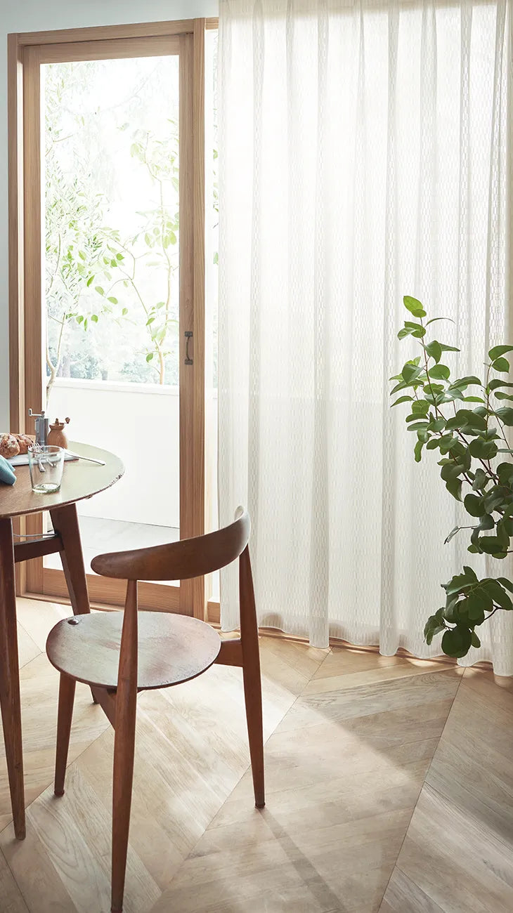 生地表面の温度変化が穏やかで、心地よい窓辺に保つことができます。