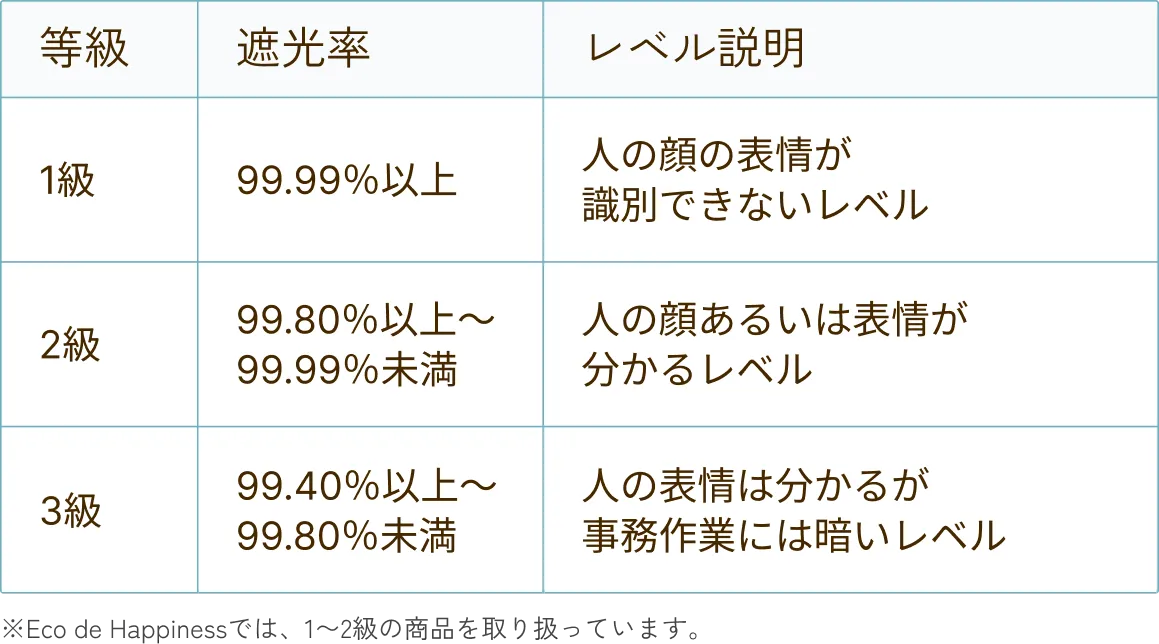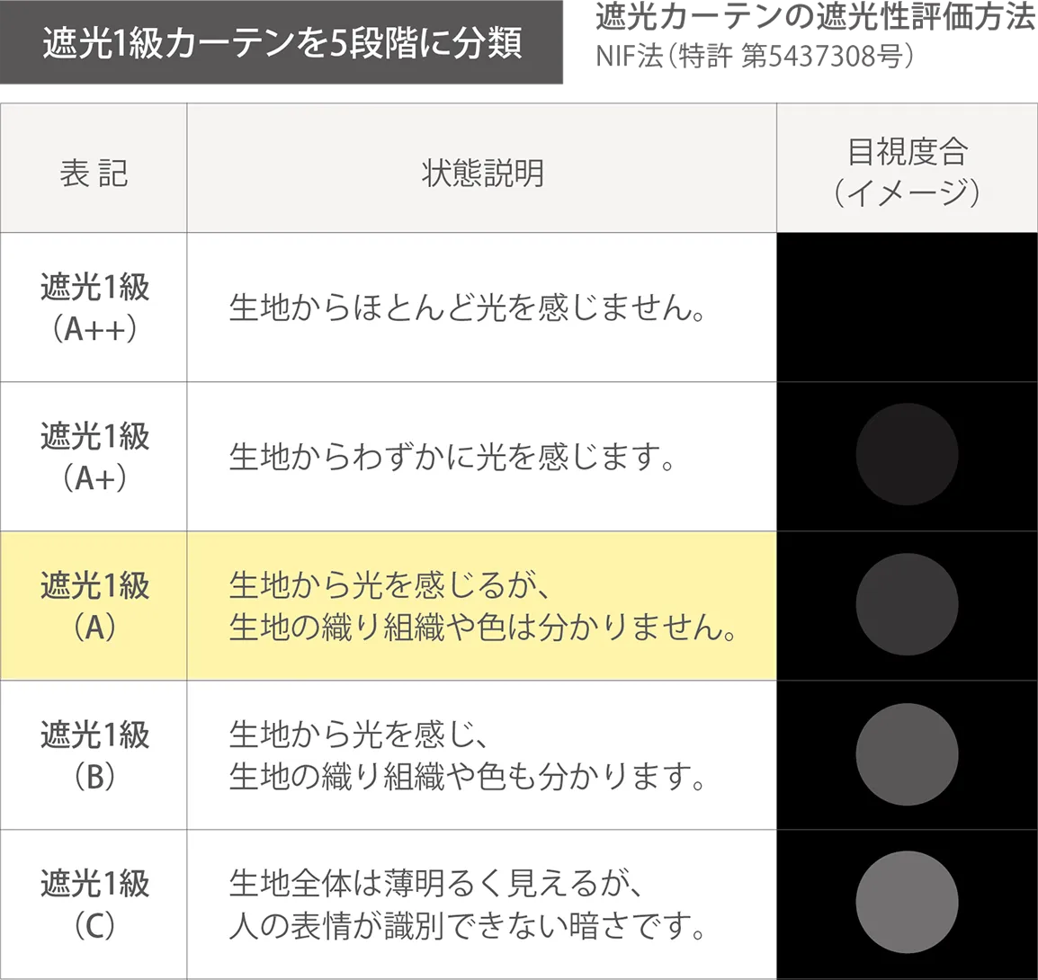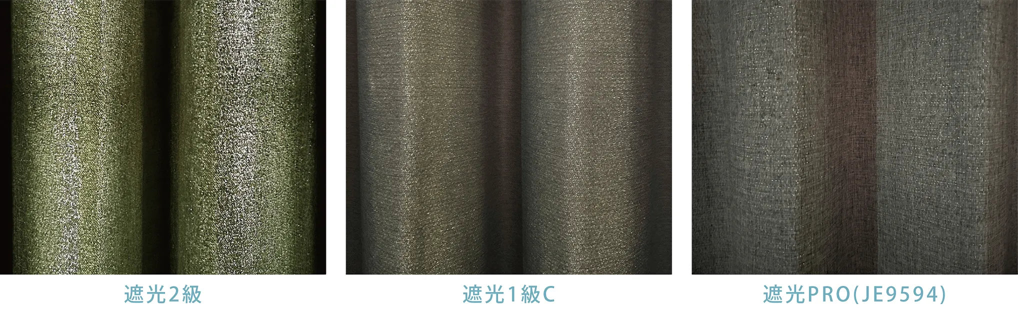 遮光等級が低いほど生地のピンホールが目立ち、遮光1級であってもランクによって見え方が異なります。