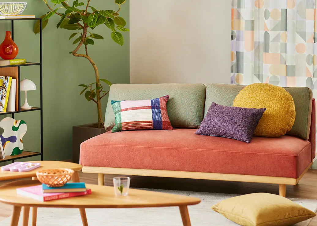 すっきりとした印象のアームレスソファは、限られたスペースでも圧迫感がないのがポイント。ひとり暮らしからファミリーまで、幅広いライフスタイルにフィットします。